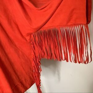 Faux Suede Red Fringe Top