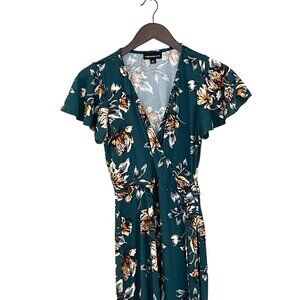 Fortune & Ivy Women's Floral Wrap Dress Size Green Black Size M NWOT