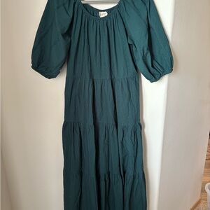 Universal Thread Teal Puff Sleeve Tiered Midi Dress | Size L | 100% Cotton
