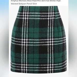 Elevate your style with the Green Plaid Wool Mini Skirt. Perfect for fall and winter, this high-waisted skirt offers a chic and cozy look.