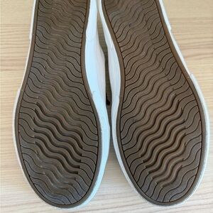 Classic white canvas sneakers with stylish brown laces. So cute and versatile. Smoke free.