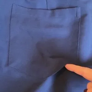 Two front pockets, two back pockets (see photo for flaw/hole in back left pocket), right side pocket