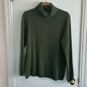 Morgan Taylor Olive Green Cashmere Turtleneck Sweater