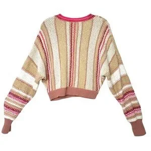 Free People Boho Show Me Love Chunky Knit Cropped Dolman Sleeve Striped Sweater