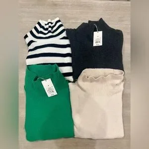 Cozy turtleneck sweater. Soft knit fabric. Ribbed cuffs and hem. Perfect for layering.