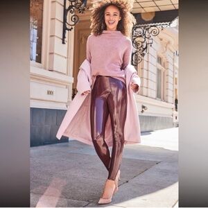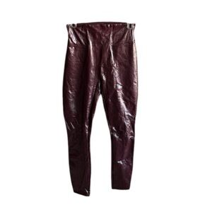 SPANX Ruby Burgundy Faux Leather Leggings Size Medium