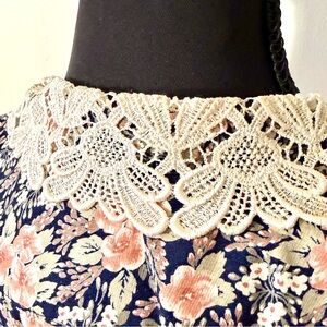 Vintage Floral Dress and Lace Collar Size 8 Petite Cottagecore, Farmhouse