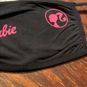 Black face mask with hot pink Barbie