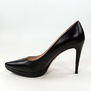 Prada Vitello Lux 3 Platform Pumps. Black Calfskin. Pointed Toe with Platform. Worn once. Surprisingly comfortable to walk in - the platform provides stability. Ships with box, no dust bags.