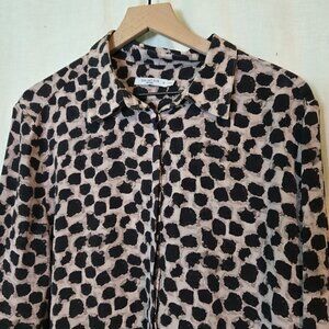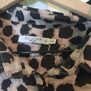 M.M. LaFleur shirt womens XXL allover abstract print neutrals silk long-sleeve