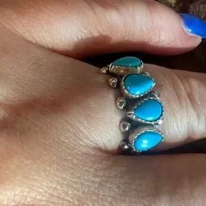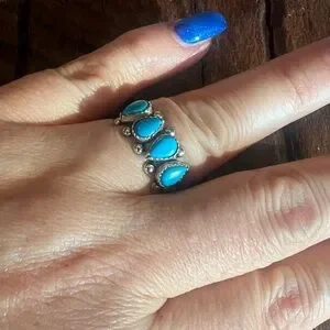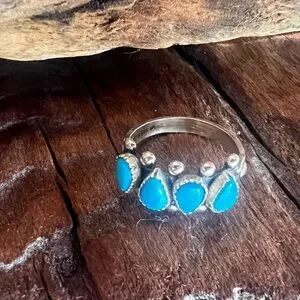 Zuni Navajo Turquoise Ring Band Blue Sleeping Beauty Native American Sterling Petit Point Rain Drops Size
