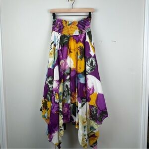 🌸 Chelsea & Theodore Abstract Floral Hanky Hem Lined Skirt, Tie Waist Size Small (Generouse Sizing - In my opinion could fit up to size Large) - Be sure to see measurements