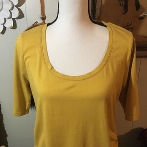 Cute elastic gathering on the side. Short sleeves round neckline. Gently preowned condition. See photo for material details