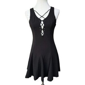 Tea & Cup Womens’s Black Lace Up Skater Mini Dress Size M