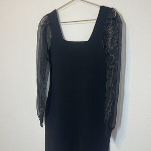 House of Harlow 1960 Bodycon Scoop Neck Knit Chiffon Sleeve Black Cocktail Dress