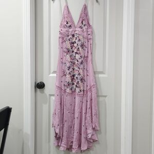 INTIMATELY FREE PEOPLE Purple Floral Maxi Slip Sundress with Plunge Neckline