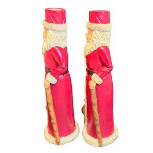 Vintage Santa candle stick holders carved Wood look Christmas candlestick set