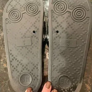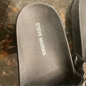 Steve Madden Black and Silver Patterned Slide Sandals