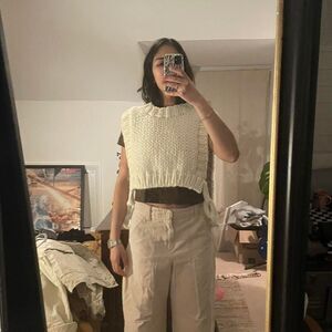Cream knit vest from anthropologie. wool blend sweater vest with chain like detail on the sides. super cute layering piece! only worn once. one size fits all #crochet #knitwear