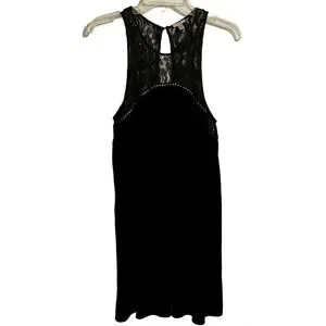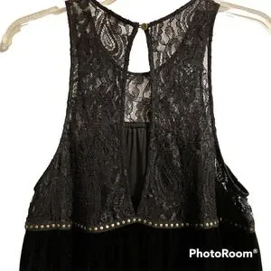 Urban Outfitters Ecote Womens Large Black Swing Dress Velvet Lace Studde…
