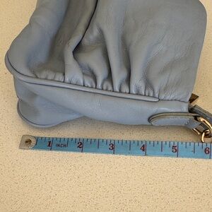 This is a very classy crossbody/shoulder quality vegan leather bag in a grayish lilac color that goes with so many things. The inside is immaculate and no corner wear. Feels very soft to touch and holds lots more than it appears - even has a spacious zipper compartment inside.