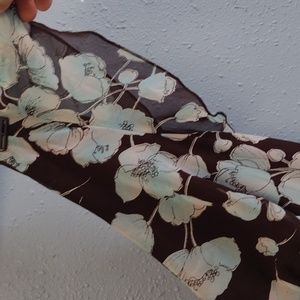 Vintage Pre-owner Elegant floral dress featuring a V-neck design. Perfect for any occasion with its stylish Brown and blue color scheme.