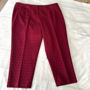 Talbots Heritage Ankle Pants 18W Petite Burgundy Wine Jacquard Dot Stretch Plus
