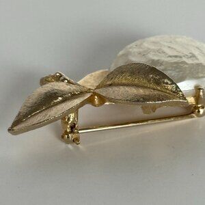 Sarah Coventry Faux Pearl Brooch Pin Baroque Vintage Gold-Tone White Flower Leaf