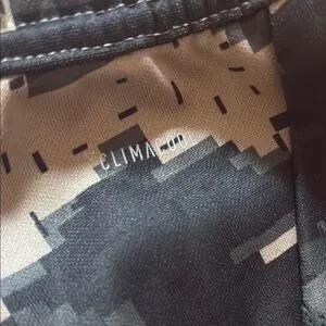 Adidas pants with a striking camouflage design. Features neon orange stripes for a bold touch.