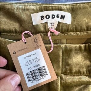 Boden Westbourne Velvet Trousers Green Pink 4 NWT