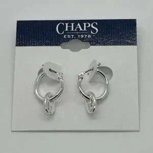 Chaps Silver-Tone Double Hoop Earrings With Dangling Oval Accents For Women