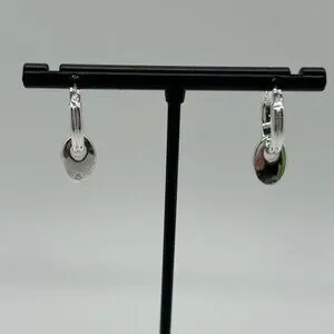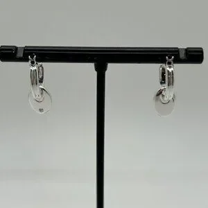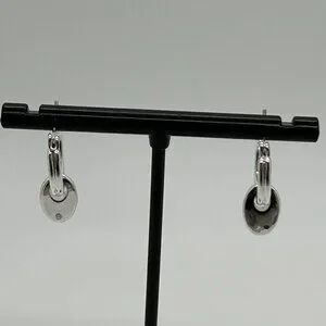 These earrings capture a timeless, elegant design, featuring double hoops and dangling oval accents. The silver-tone finish adds a sophisticated charm.