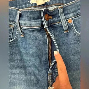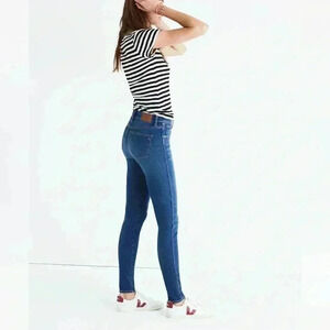 Mid rise jeans. Skinny leg opening. Zipper fly. Medium wash. In excellent pre owned condition with no signs of wear. No flaws to note.