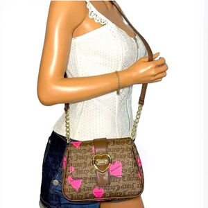 Juicy couture love 💕 pink heart brown monogram crossbody bag