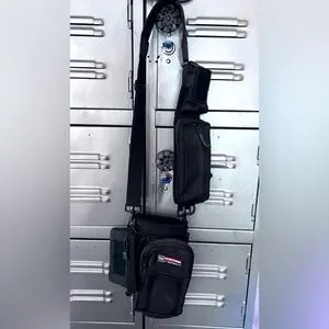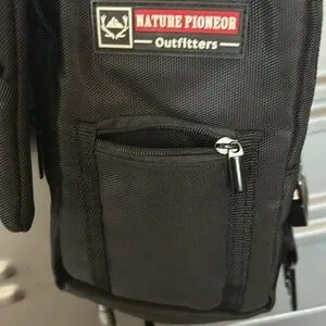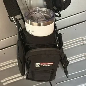 Nature pioneer utility pack can be worn on shoulder or cross body. This pack has lots of compartments. It has a sunglass or eyeglass case it has a cigarette and lighter case or a cell phone whatever you choose to put in it it holds a 36 ounce Tumblr with no handle. It has a snap release keychain. all accessories used in photos Do not come with it I just used them to show where things go. This is unisex anyone can use it.