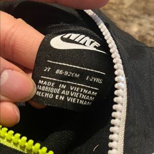 Nike Black Jacket with White Logo and Yellow Zipper