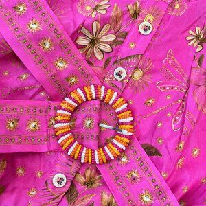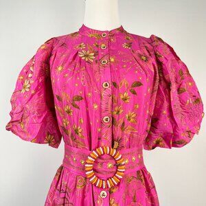 NWOT Farm Rio x Anthropologie Beaded Belt Puff Sleeve Pink Mini Dress Sz M