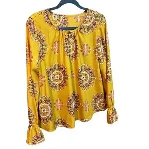 🦃 2/$20 NWOT W5 Gold Blouse with Floral Spheres Size M*