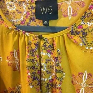 NWOT W5 Gold Blouse with Floral Spheres Size M