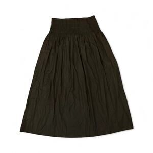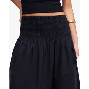 NWT Madewell Smocked-Waist Poplin Midi Skirt Black Size M