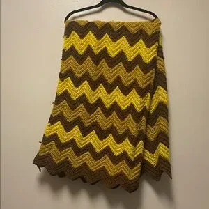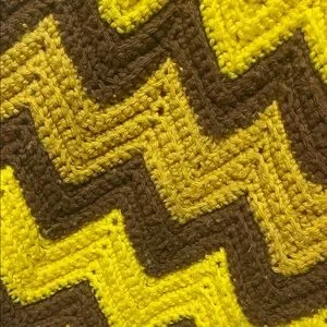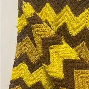 Vintage Chevron Patterned Brown and Yellow Handmade Crochet Blanket