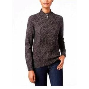 Imitation-pearl buttons at the neckline make this petite cable-knit sweater from Karen Scott extra sweet. Imported Mock neck with imitation-pearl button details at front Web ID: 11256841 Designed to fit and flatter 5'4" and under frame Relaxed fit Acrylic/polyester Machine washableSize: Womens SP Condition: New With Tags