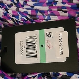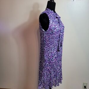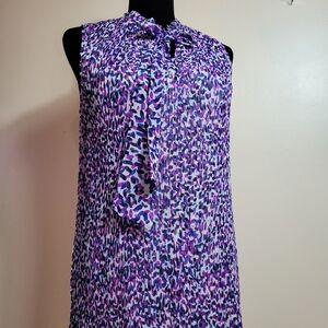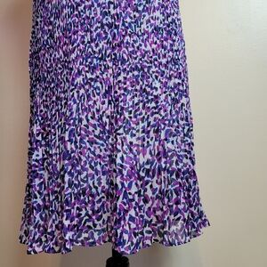 feather light, fully lined midi dress abstract design purple size 8. ptp 19. lenght 39.