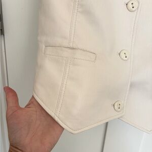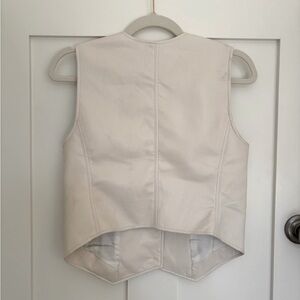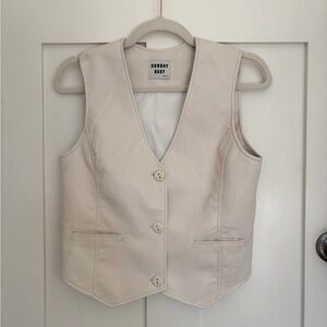 Featuring a classic V neckline and sleek welt hand pockets, this vest is an excellent choice for those seeking a sophisticated yet eco-friendly addition to their wardrobe. Its shrunken design ensures a stylish fit, making it perfect for layering over both casual and formal looks.