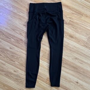 Elevate your style with these sleek black high-waisted leggings from Athleta in size Large. Perfect for any occasion, offering comfort and a flattering fit.