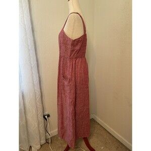 This Rachel Zoe 100% linen midi dress captures effortless sophistication with a breezy, tailored silhouette. Designed in a soft textured red linen, this piece features a flattering square neckline, wide shoulder straps, and a full button-down front. Side pockets and a defined waist add practical ease to this timeless style.