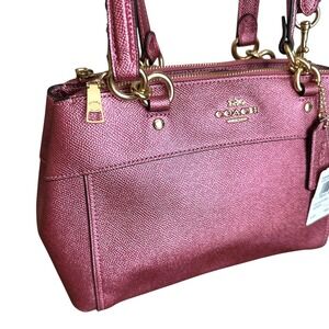 Coach Mini Bennett Satchel Metallic Berry Pink Crossgrain Leather Purse NWT