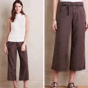 Pilcro And The Letterpress Brown Linen Culottes Wide Leg