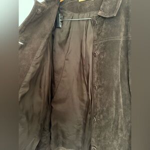Chocolate brown suede leather jacket. Lined.