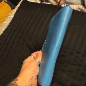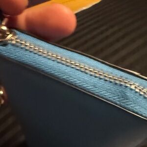 Chic Kate Spade wallet in sky blue. Features a secure zip closure.